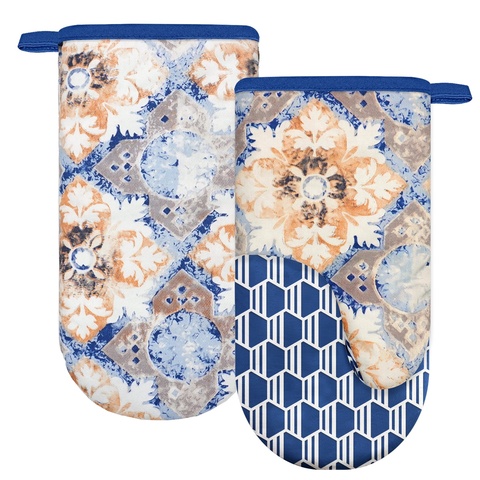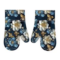 Paio di guanti da forno in Silicone con stampa motivo floreale retrò antiscivolo guanti da cucina blu resistenti al calore per guanti da forno da cucina